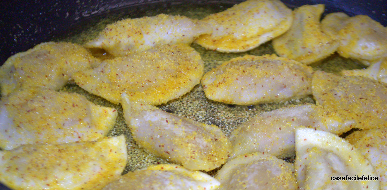 Prendetene una manciata e mettetele in un colino, calatelo nell’olio caldo e fate dorare, procedete cosi per un numero pari di mucchietti.