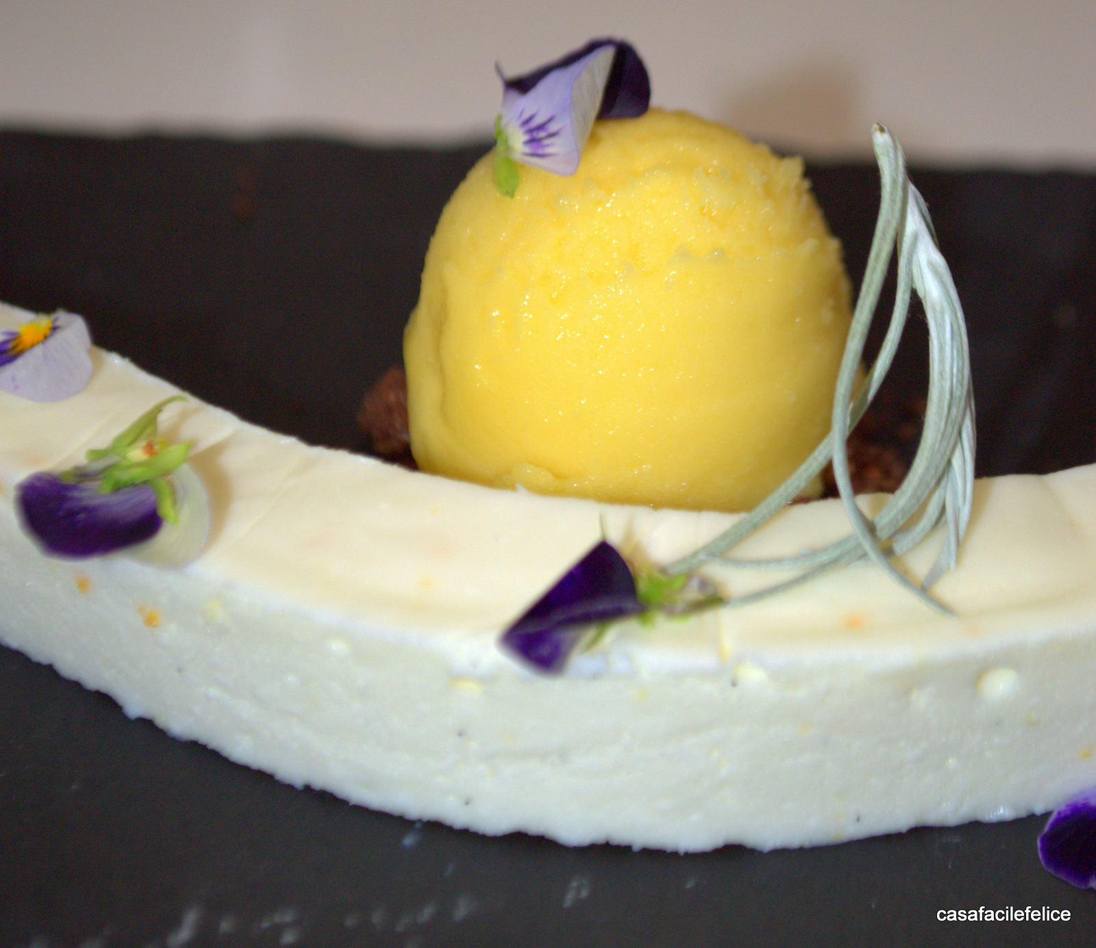 Il tutto servito con una pallina di gelato al mango, accostamento equilibrato che non copre la delicatezza dell’insieme ma sorprendentemente la esalta.
