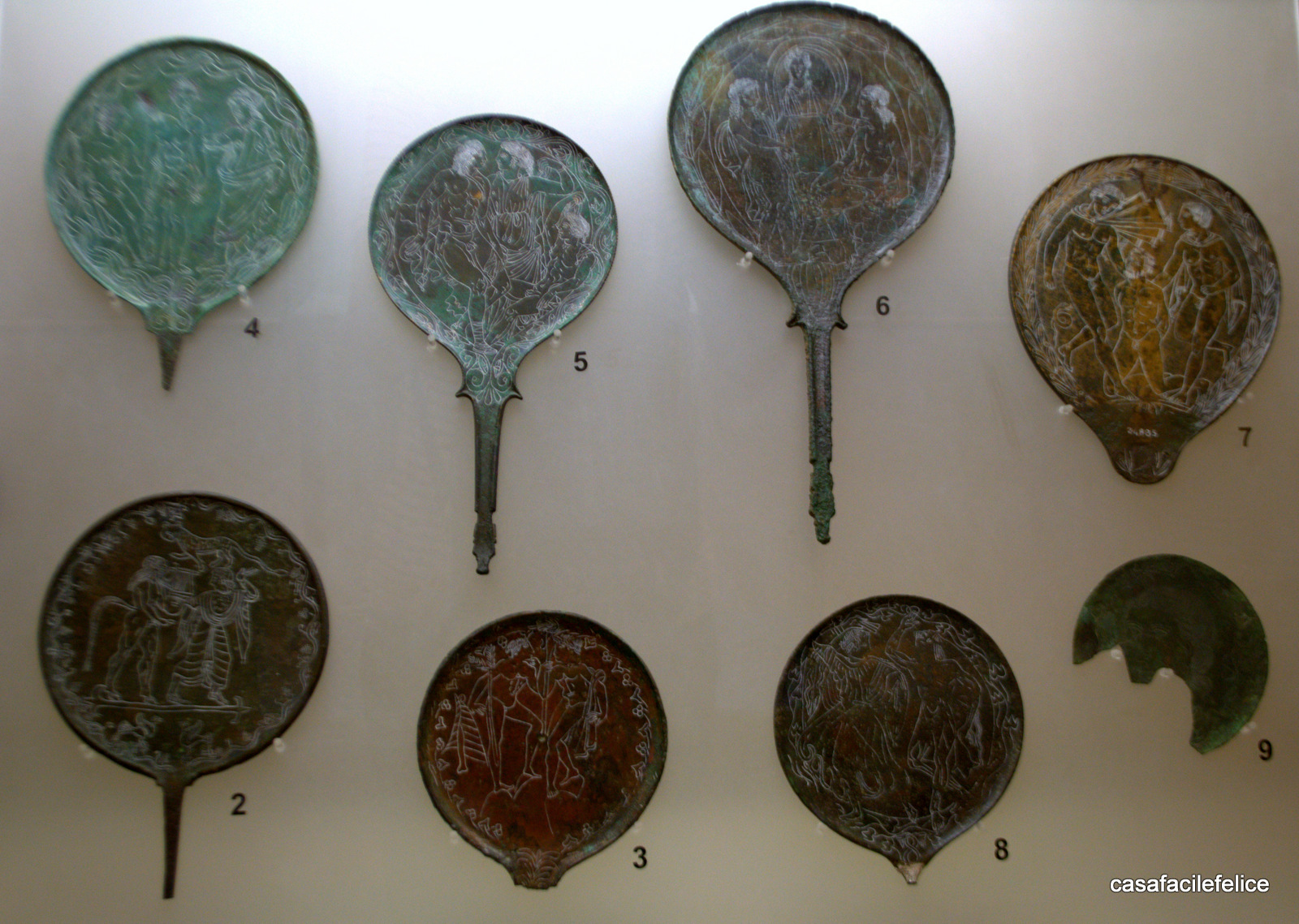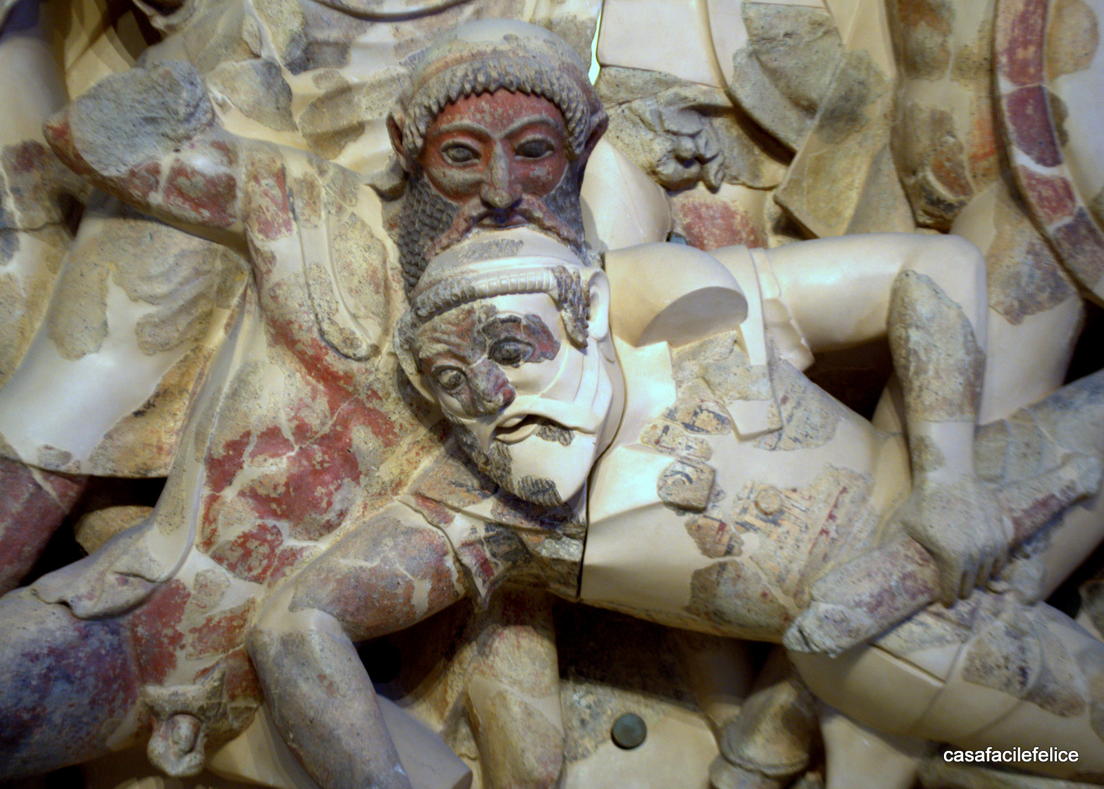 Antonietta 13/07/2016Ero a Roma, il pomeriggio era caldo e avevo tempo di fare qualcosa di piacevole prima di partire, che per me si traduce in: visita al museo più vicino. Zainetto con macchina fotografica in spalla, bottiglietta di acqua e scarpe comode mi avvio giù per via Gramsci, attraverso la strada all’incrocio con via Buozzi e dopo un po scendo le scale che portano a Villa Giulia. Non vi dirò della villa, ma del museo etrusco che custodisce migliaia di reperti archeologici di squisita fattura che sono in grado di stupire il visitatore. Vasellame di terracotta di colore scuro tendente al nero, sapientemente lucidata a stecca, di ogni foggia e misura, che accolgono il visitatore accompagnandolo in un altro tempo; si viene circondati da storie dipinte su vasi, piatti e altri oggetti, storie che parlano di guerre, battaglie epiche e vita vissuta. Sono i nostri padri? Forse noi apparteniamo alle genti Greche o forse ai Lucani ma mi piace pensare di avere radici in un popolo che è stato in grado di creare oggetti e disegni così belli da incantare. L’ala più visitata è quella dedicata ai Castellani con le collezioni orafe di pregevole fattura; anche se le statue di Apollo, Giunone, Ercole, posseggono una plasticità armoniosa e movenze tali da pensare che stiano per prendere vita ed uscire per andare nel Ninfeo a riposare o pranzare al fresco.
