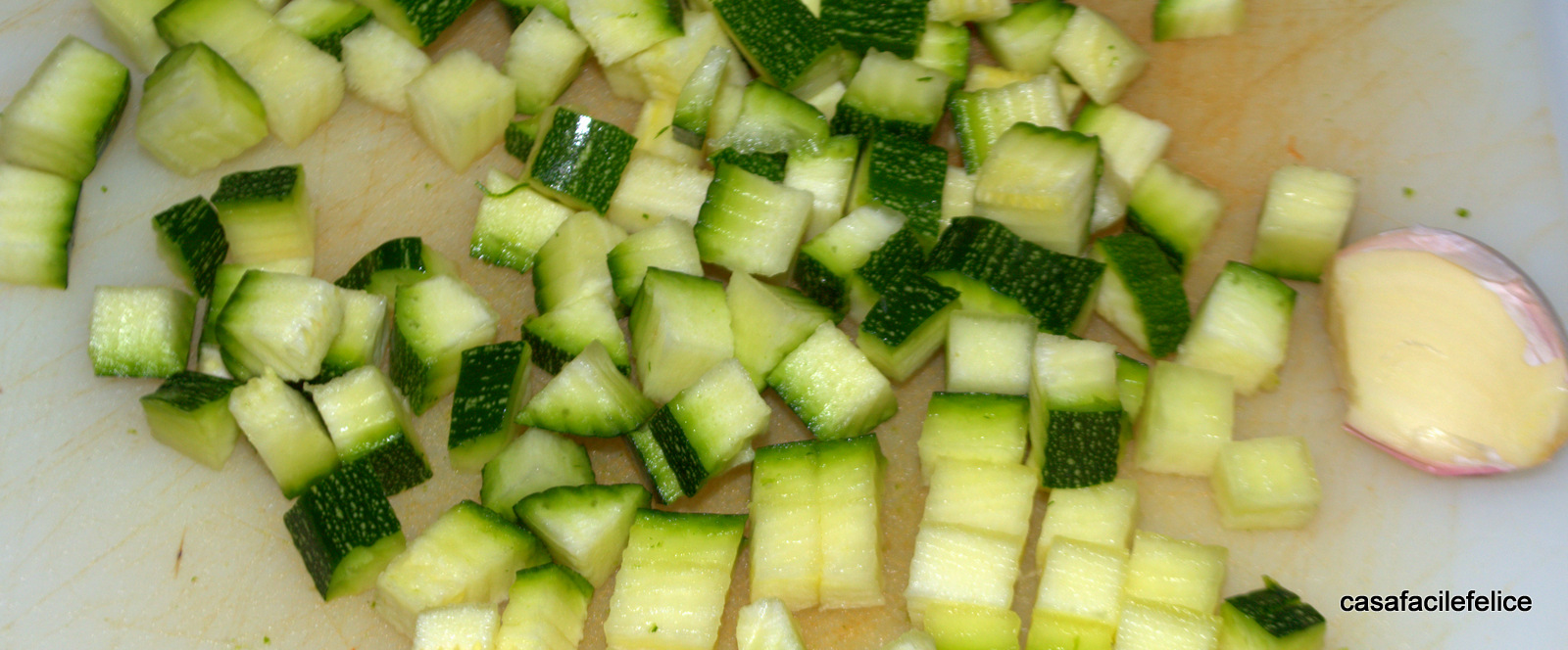 Mettete a bollire abbondante acqua salata per cuocere la pasta e intanto tagliate a dadini piccoli un peperone rosso,