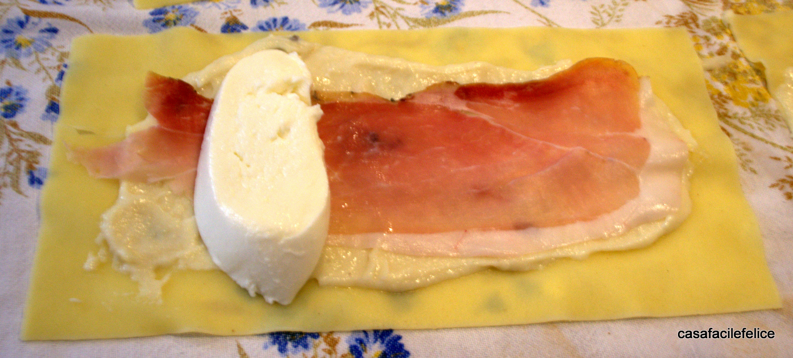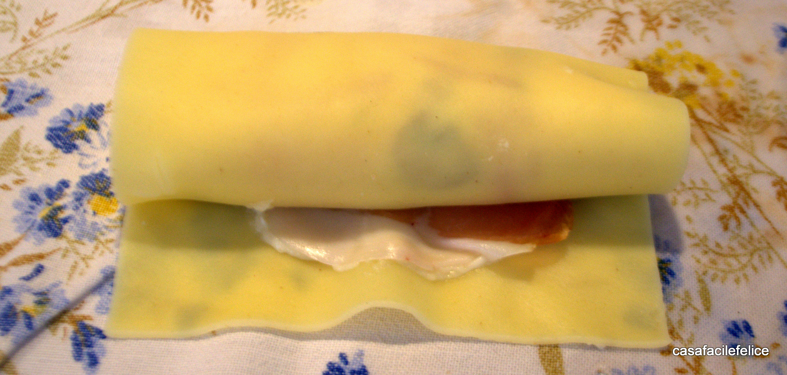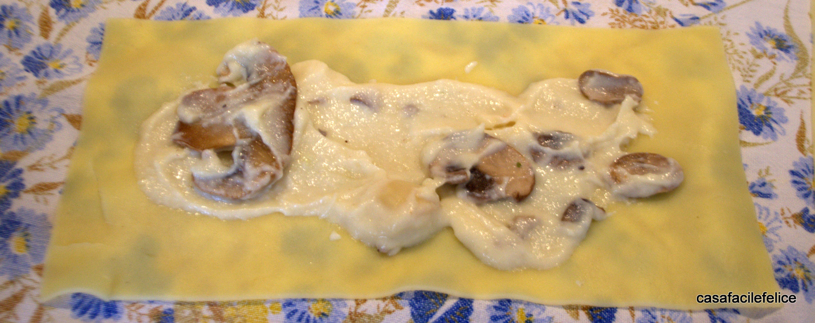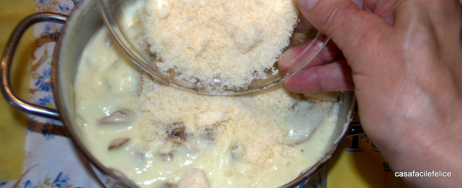 mescolando delicatamente con il formaggio grattugiato.cannelloni funghi e speck