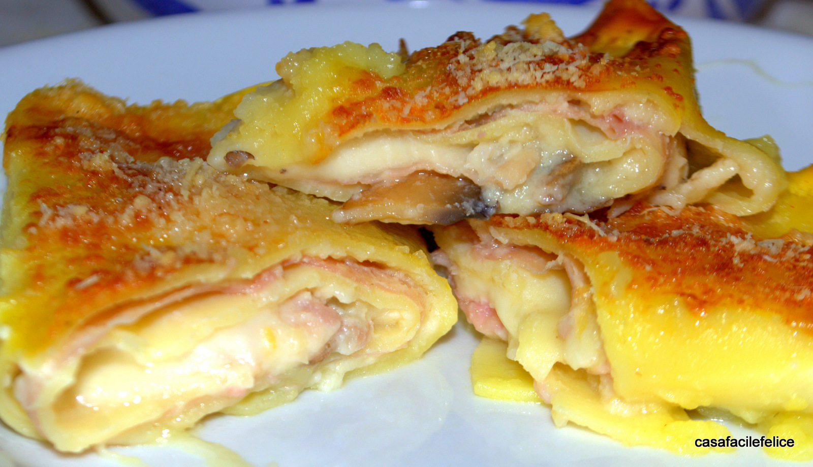 Quando la superficie sarà dorata, sfornate e lasciate riposare qualche minuto prima di servire.cannelloni funghi e speck