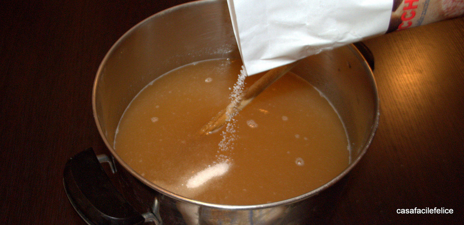 Se necessario ripetete l’operazione per ottenere un liquido trasparente. Misuratelo e versatelo in una pentola d’acciaio, per ogni litro di liquido ottenuto, aggiungete 1,200 kg di zucchero a freddo mescolando bene per scioglierlo;sciroppo di uva fragola bianca