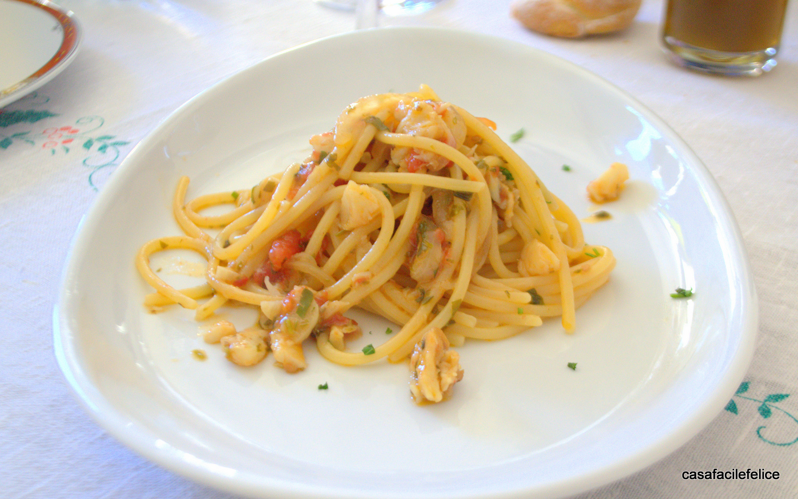 Intanto cuocete la pasta al dente, scolatela e conservate una tazza di acqua di cottura, versatela nella padella del baccalà e fate insaporire. Se necessario aggiungete qualche cucchiaio di acqua di cottura della pasta.