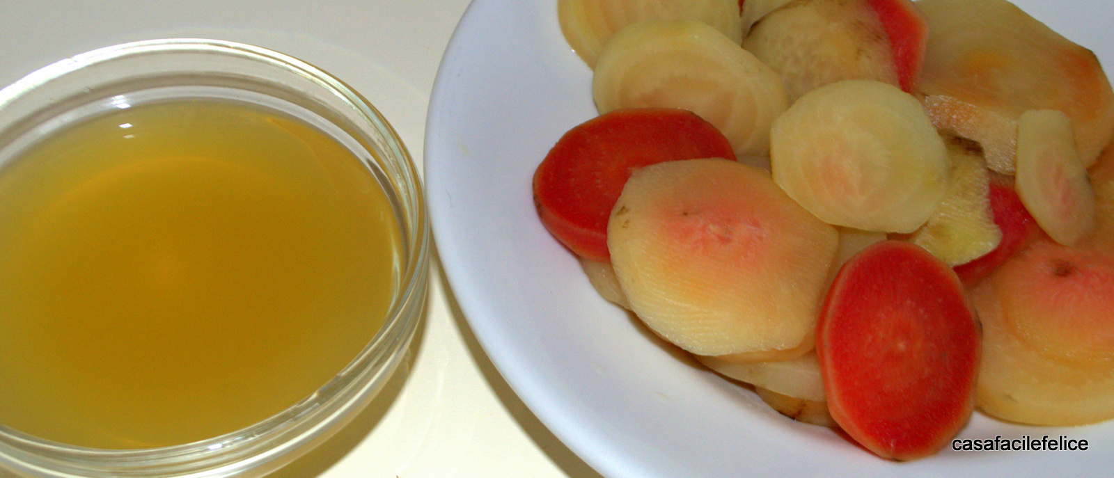 Sbucciate le rape, lavatele in acqua corrente e tagliatele a fette spesse mezzo centimetro circa.