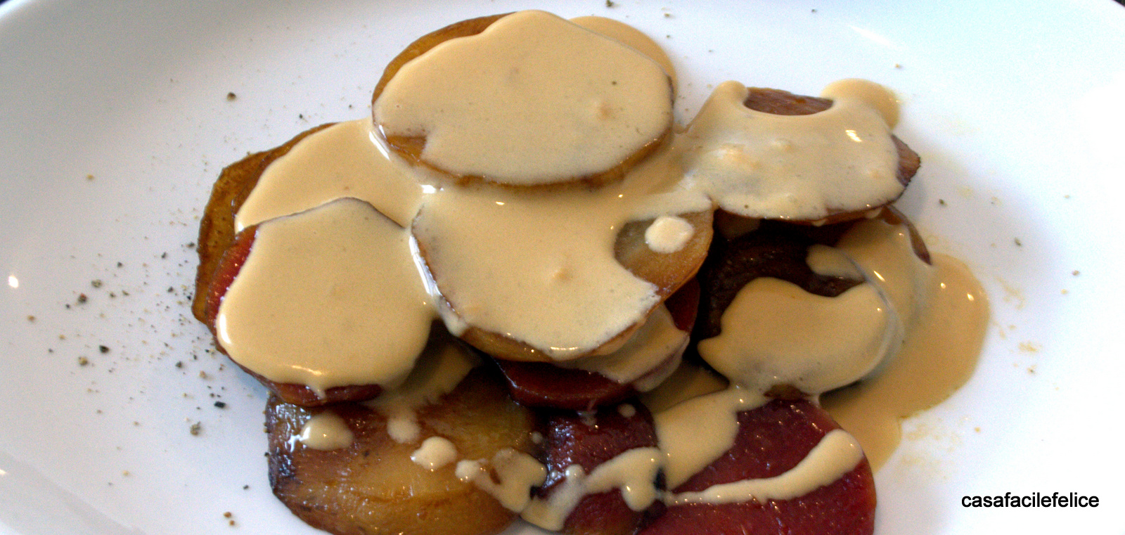 Togliete le fette cotte dalla padella, mettete in parte e versate il brodo con la farina nel fondo di cottura delle rape facendo addensare a fuoco lento.