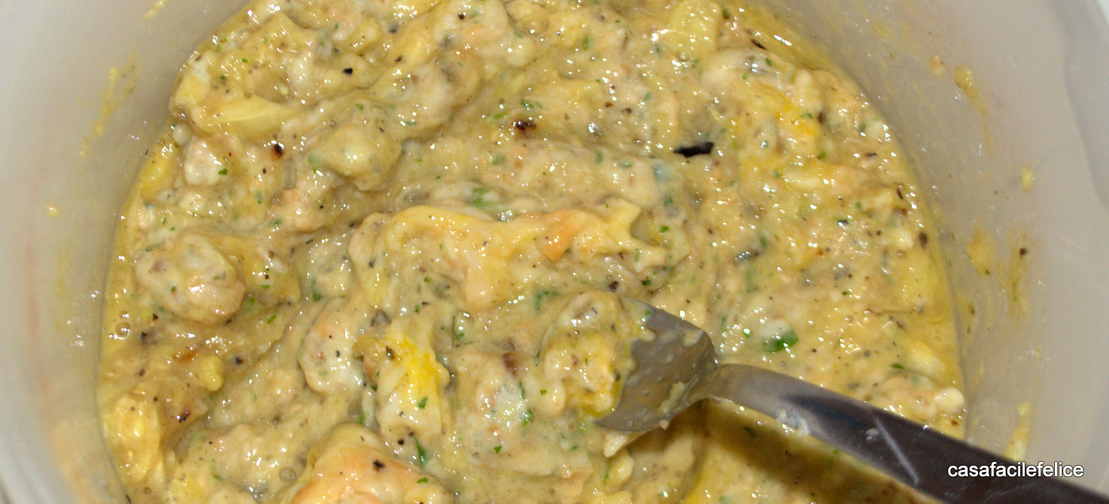 Aggiustate di sale, pepe e formaggio grattugiato e amalgamate tutto con un uovo.