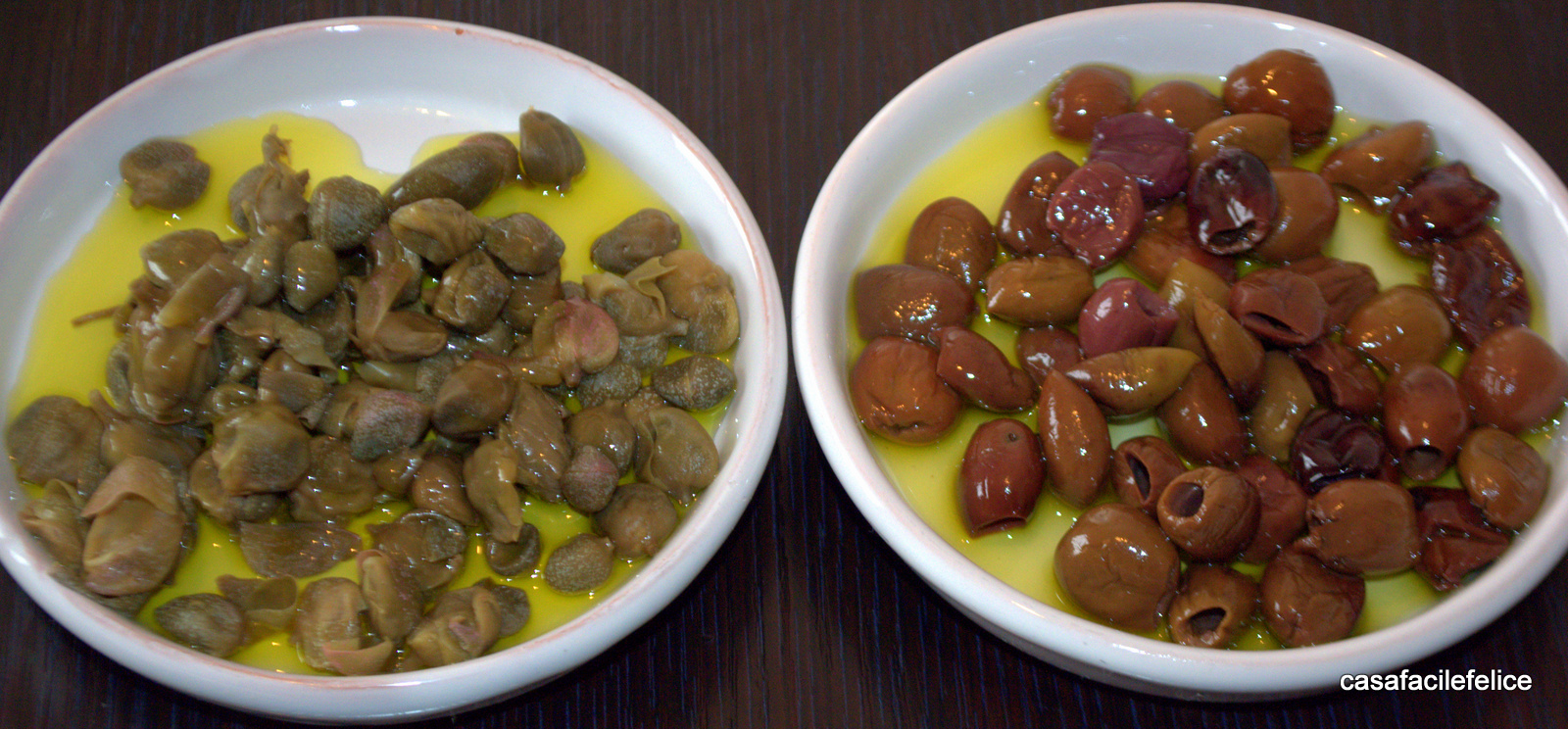Mettete i capperi salati in una scodellina e versate sopra un mestolino di aceto tiepido, mescolate e lasciate qualche minuto.