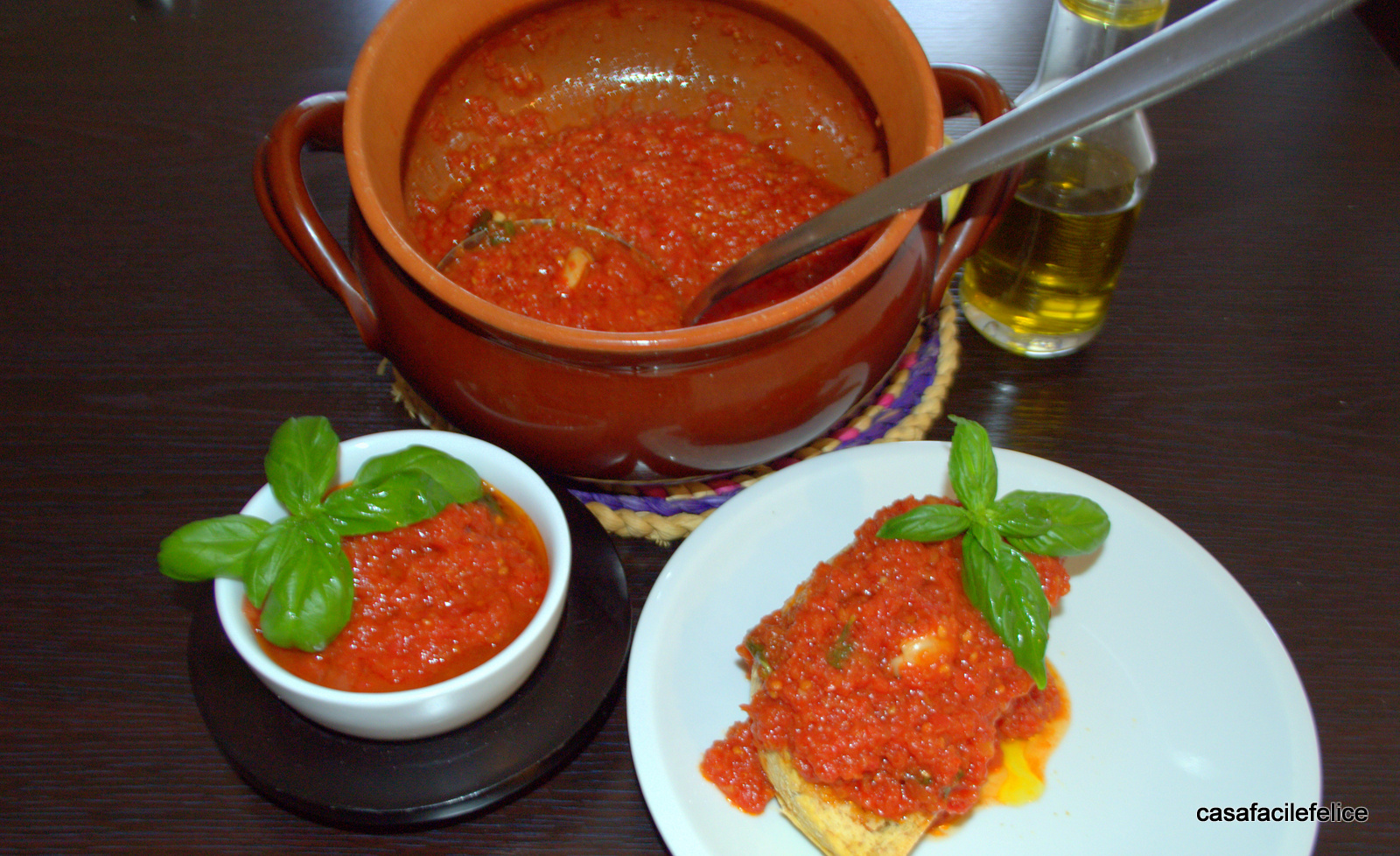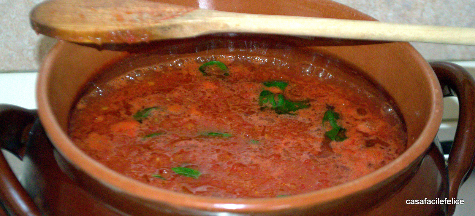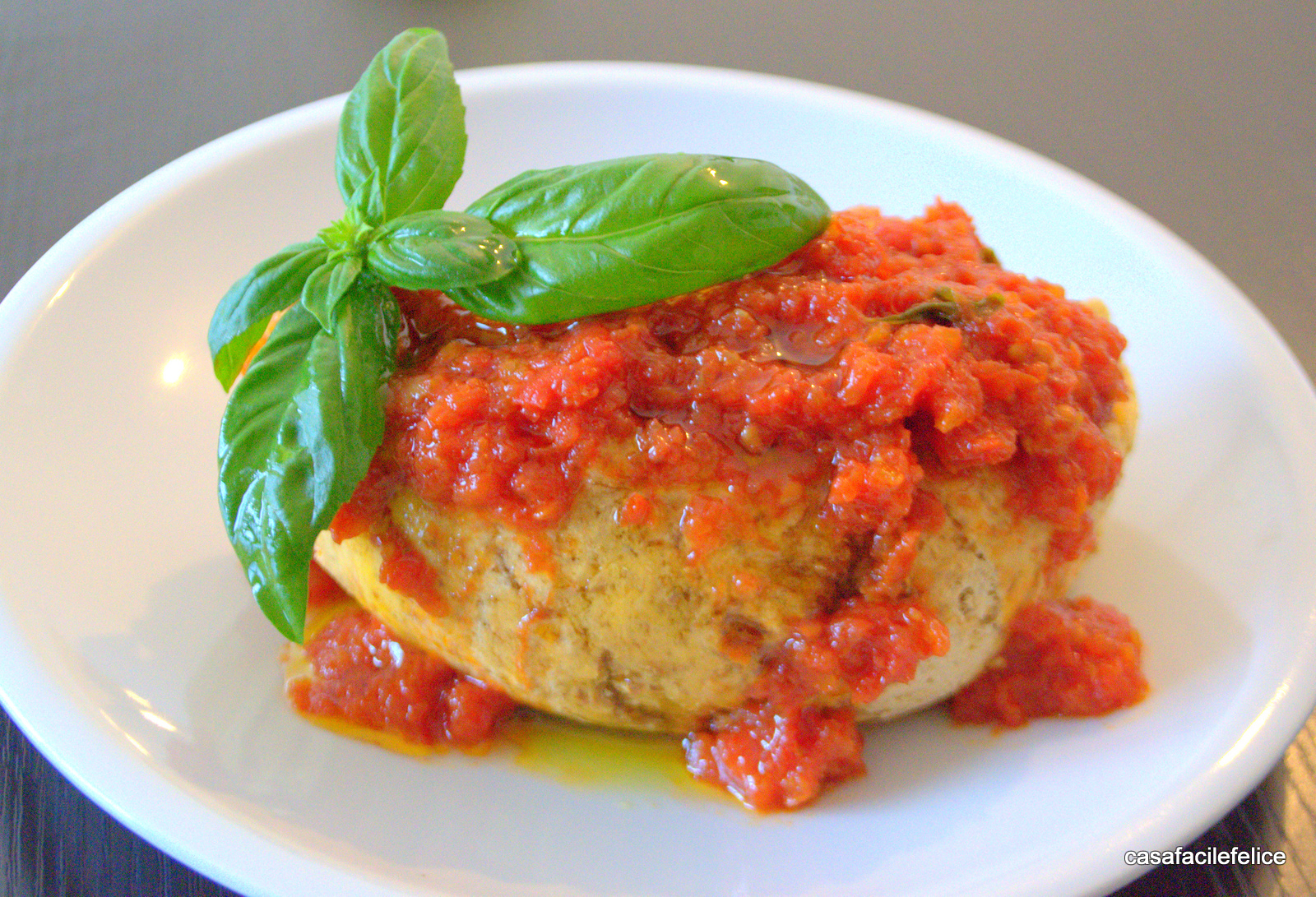 Antonietta 18/08/2017Ecco una ricetta semplice e gustosa che si presta a molti utilizzi, il sugo fatto utilizzando i pomodori maturi profumato da basilico e spicchi di aglio che possono essere tolti a fine cottura. Chi ha molti anni sulle spalle sicuramente ha ricordi infantili di una fetta di pane casereccio con cucchiaiate di sugo ancora non perfettamente cotto o pane biscottato bagnato dal mestolone di sugo ricco di basilico profumato e olio extravergine d’oliva.