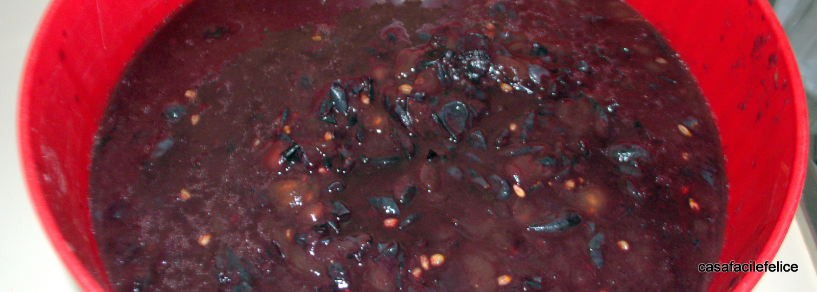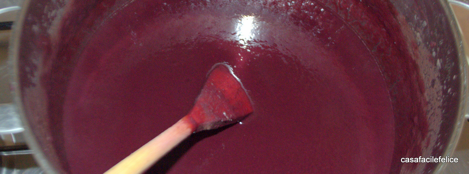 Fate cuocere a fuoco dolcissimo per tre o quattro ore o comunque fino a che si sarà ridotto del 70/ 75 %, molto dipende dalla qualità dell’uva e dalla quantità di acqua assorbita.
