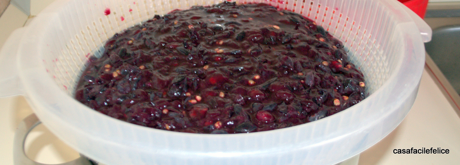 Trascorso il tempo, scolate gli acini attraverso un colapasta e raccogliete tutto il succo prodotto.