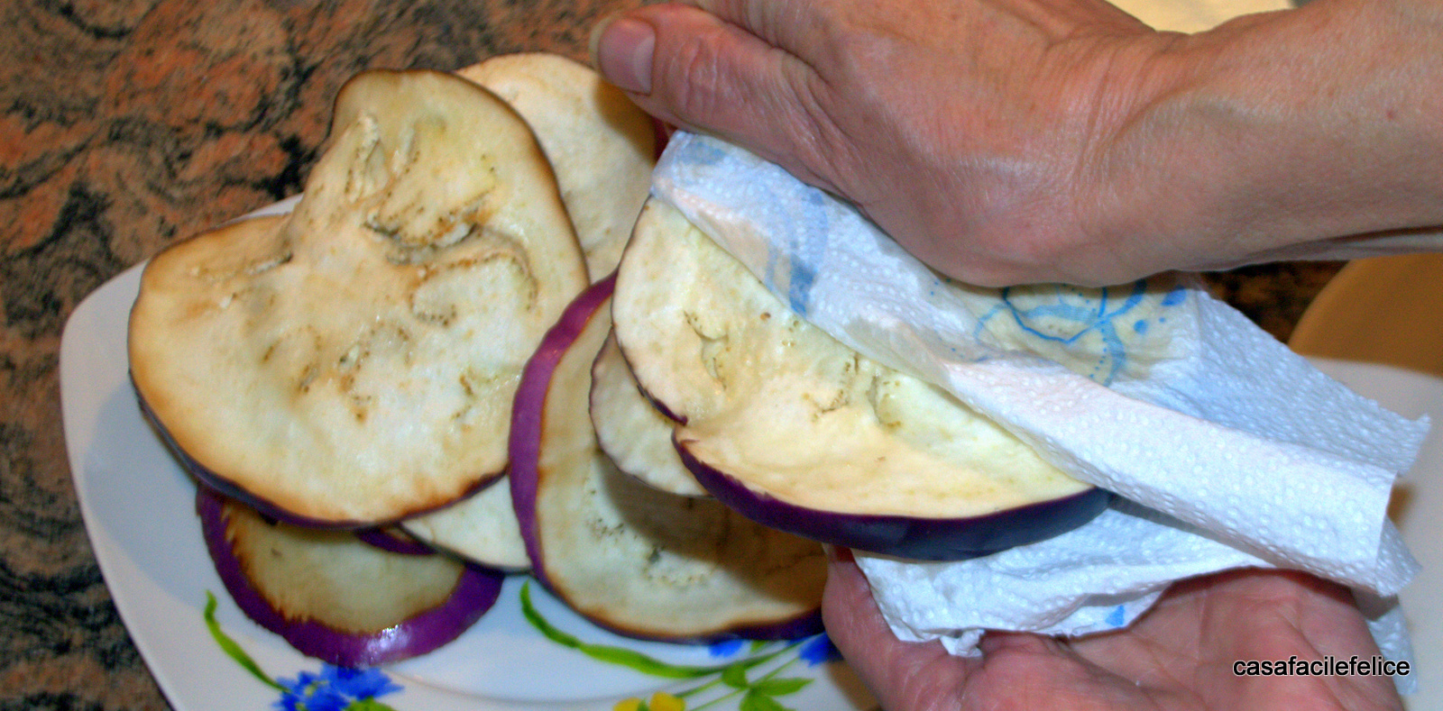 Trascorso il tempo, strizzate le melanzane e asciugatele bene.