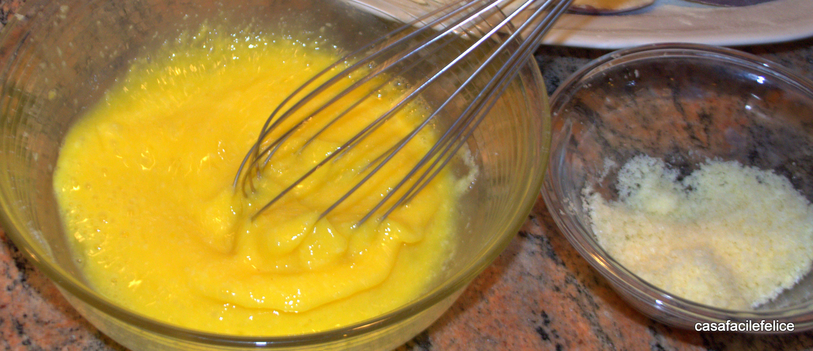 Sbattete le uova in una scodella e aggiungete un pizzico di sale e pepe.