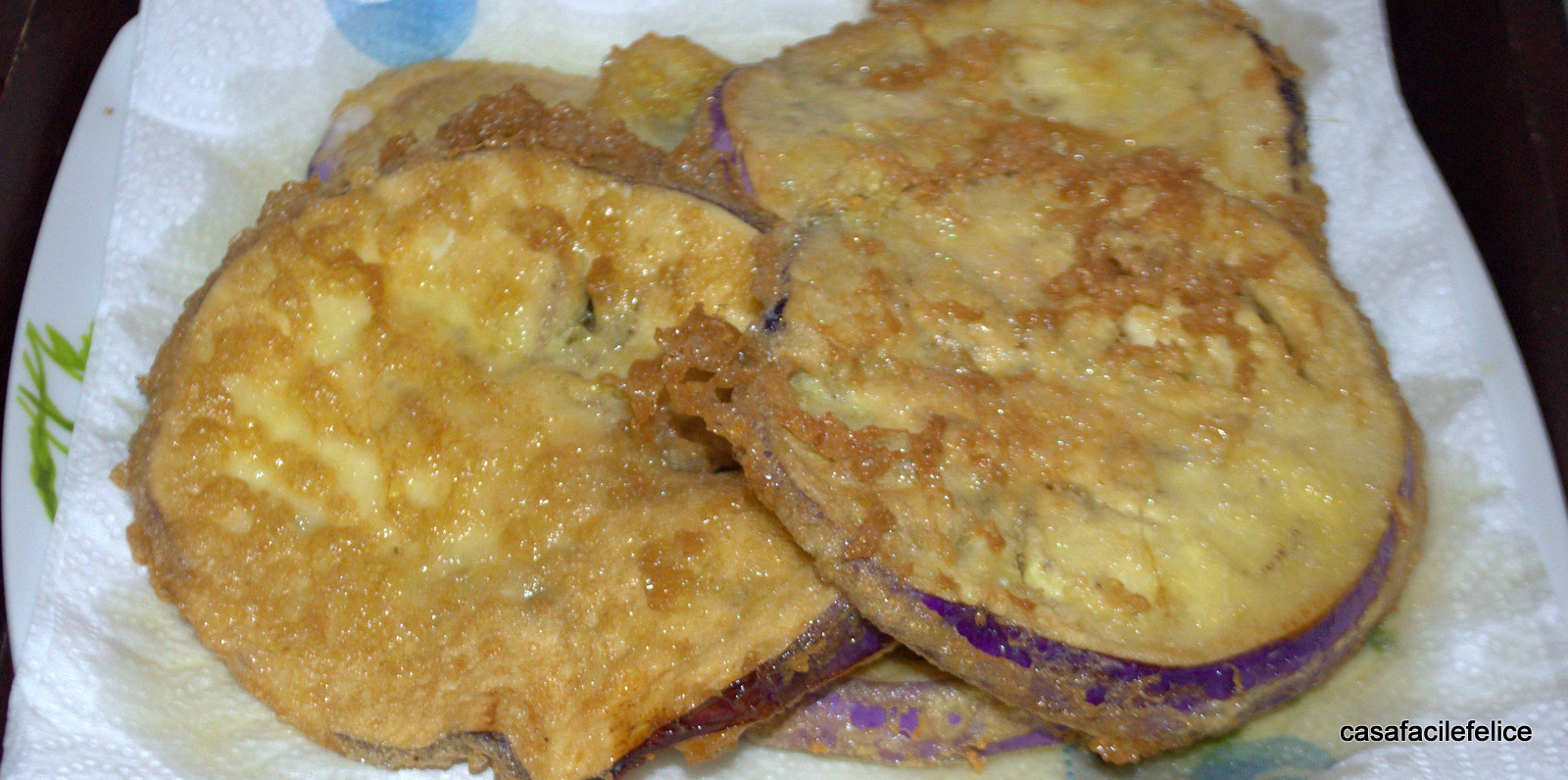 Mettete le fette fritte su carta assorbente per togliere l’eccesso di olio.