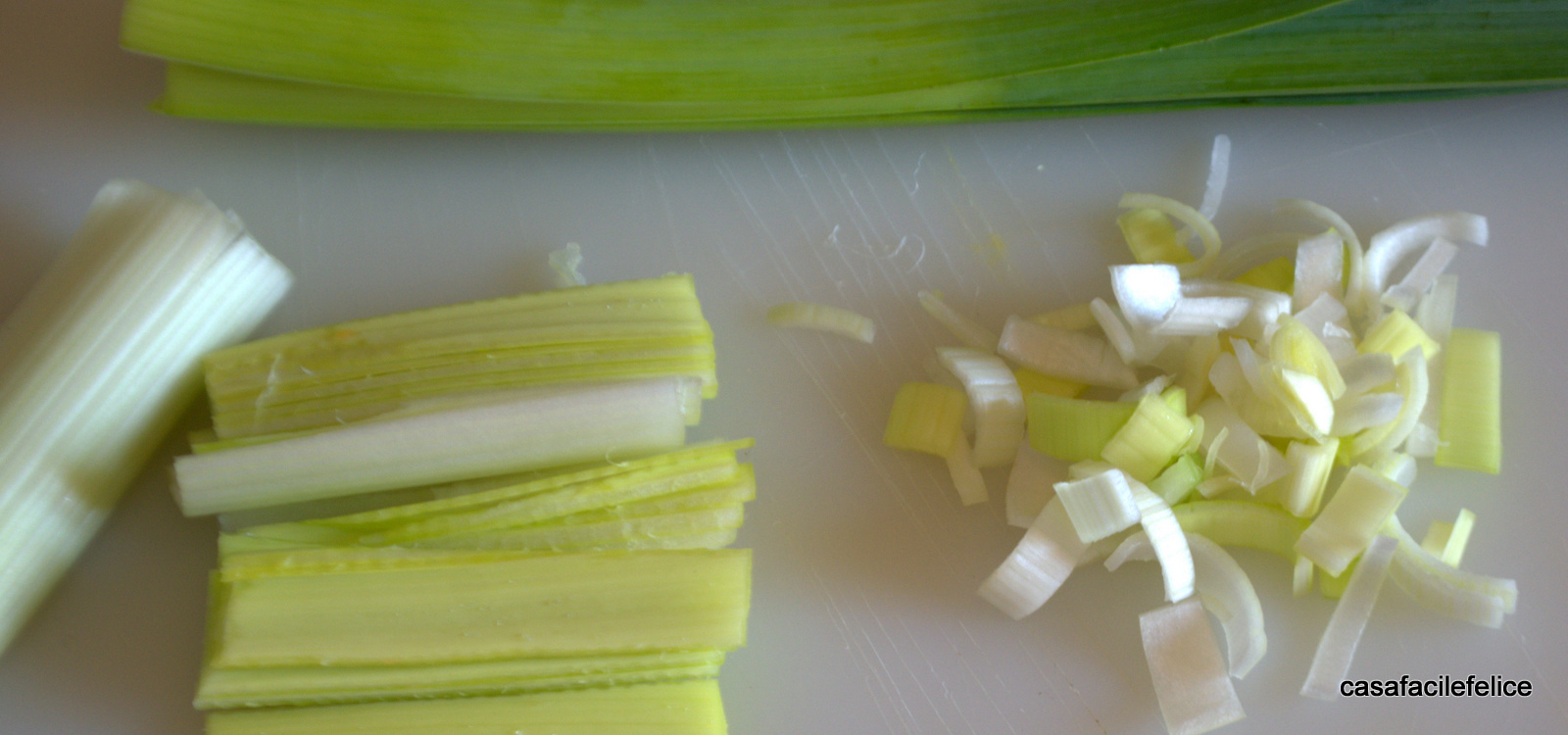 la cipolla, la radice di prezzemolo, il porro e tritate tutti gli ingredienti.