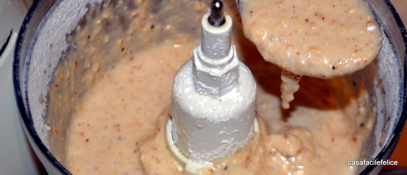 Fate tostare leggermente le mandorle e le nocciole tenendone da parte un po per la decorazione, Mettetele in un tritatutto e aggiungete l’amido, lo zucchero a velo, la farina e fate tritare finemente. Aggiungete gli albumi e tritate fino ad ottenere una pasta non troppo densa, fatela rassodare in frigo per 15 minuti.