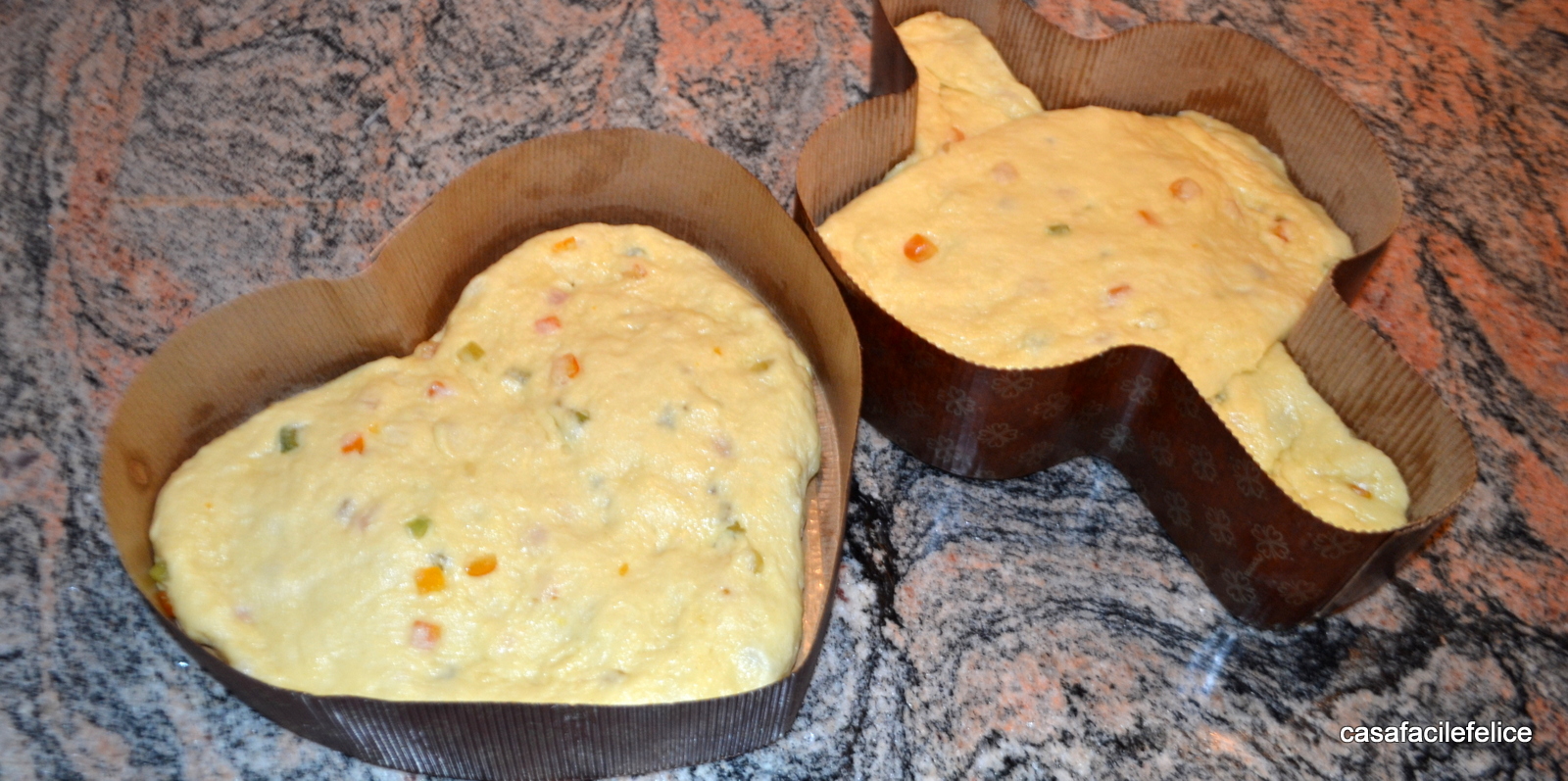 Incorporate poco alla volta il burro morbido nel primo impasto, sciogliete lo zucchero nel latte e aggiungetelo poco alla volta all’impasto, unite anche la farina sempre poco alla volta poi il sale e gli aromi. Lavorate bene l’impasto e aggiungete un tuorlo alla volta  infine incorporate anche i canditi. Ungete il piano di lavoro e lavorate l’impasto per qualche minuto poi dividete a metà e lasciatelo lievitare coperto per 20-30 minuti. Trascorso il tempo, stendete l’impasto nei pirottini da 750 grammi e fate lievitare nel forno spento per 6-8 ore.