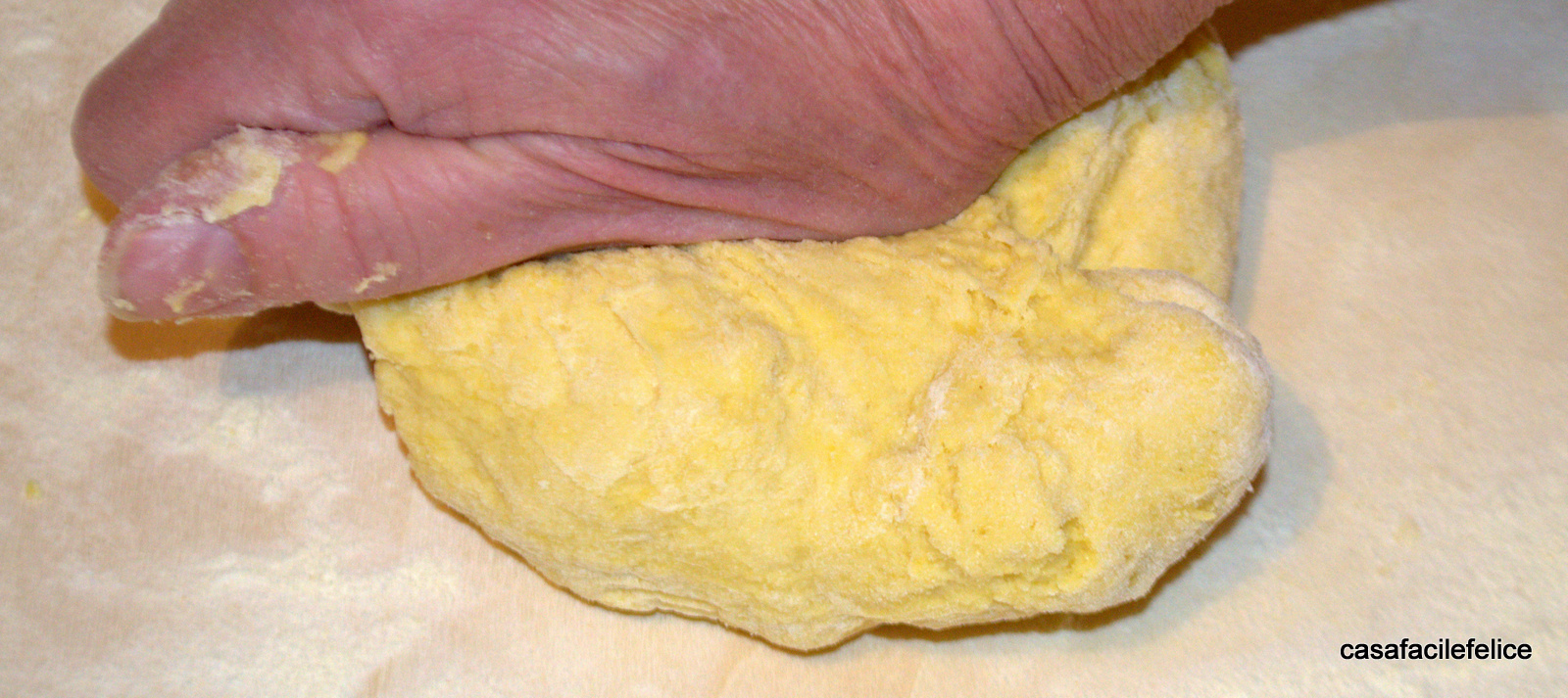 Se necessario, aggiungete un po di acqua tiepida in modo da ottenere un panetto e lavoratelo fino a che risulti liscio ed omogeneo.
