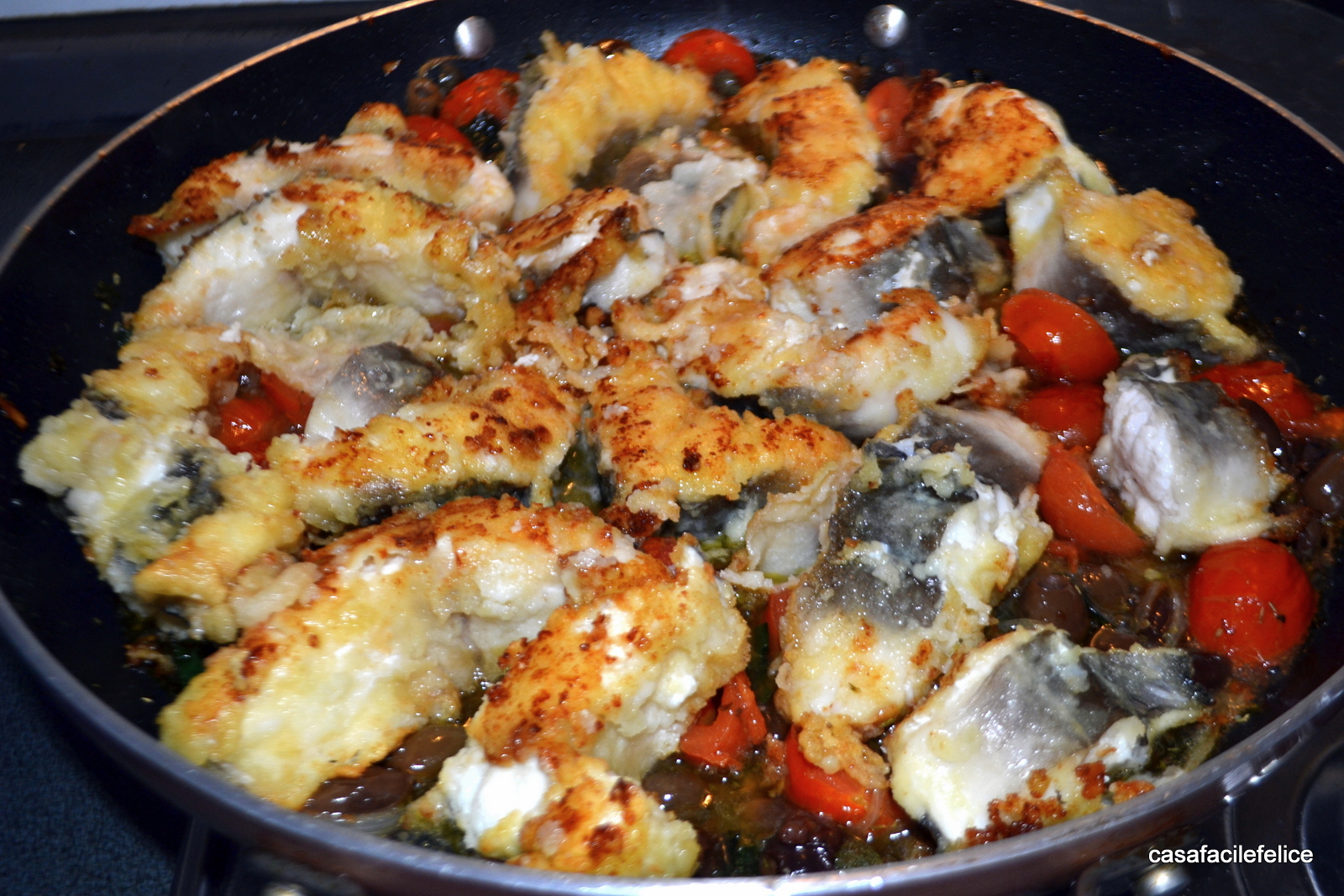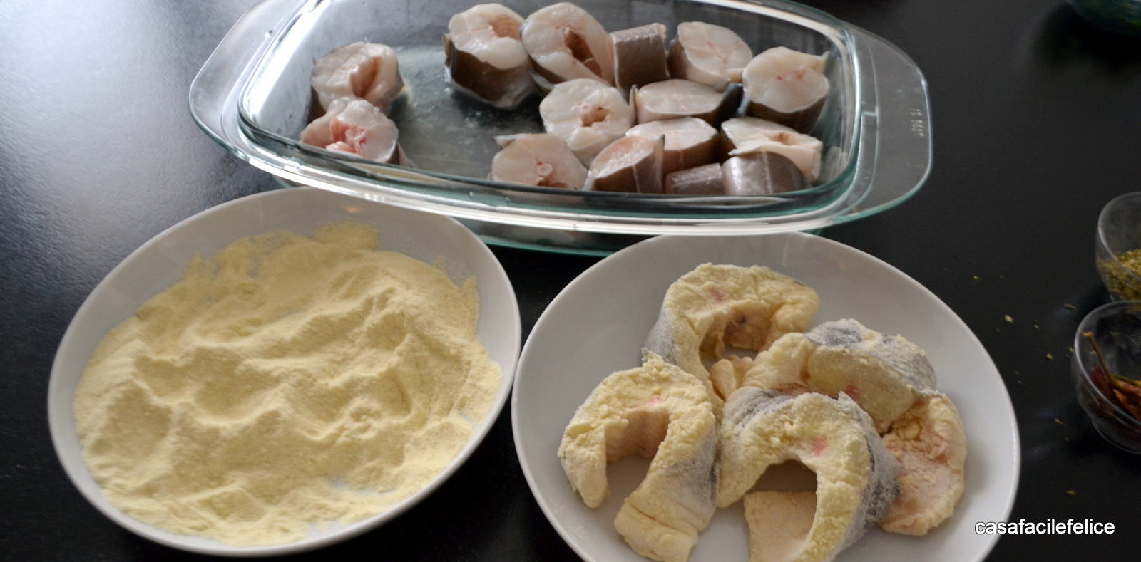 Togliete la testa e la coda, tagliatelo in pezzi di un paio di centimetri di spessore e infarinateli.