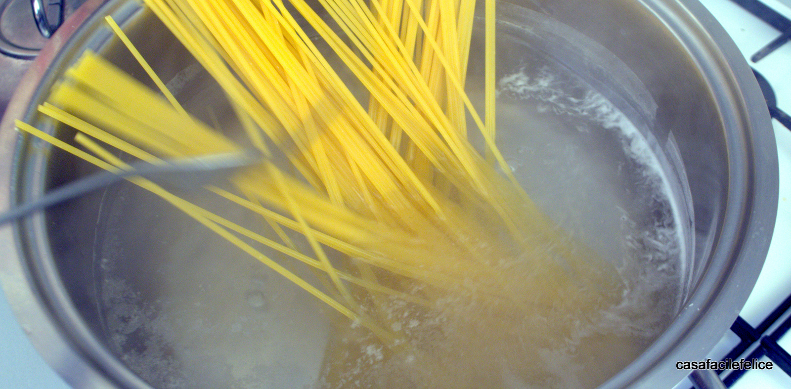 - Quando l’acqua bolle, salate e cuocete gli spaghetti.