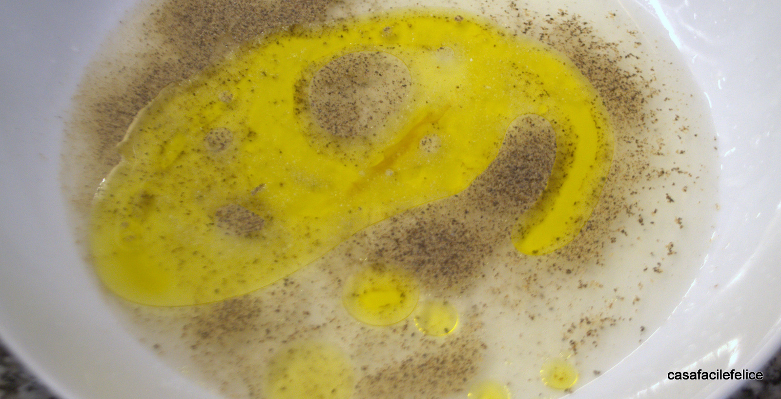 Intanto versate in una ciotola il succo di un limone, una tazzina di olio evo, un po di sale e pepe e amalgamate tutti gli ingredienti.