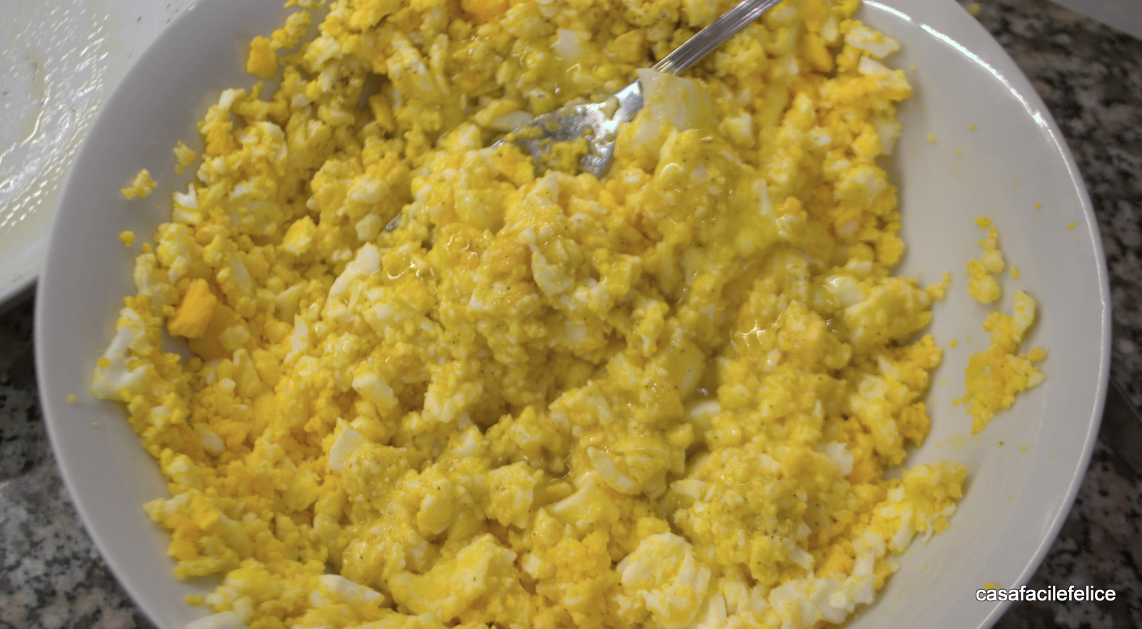 Lessate le uova per 7 minuti, raffreddatele, sbucciatele e tritatele con una forchetta.
